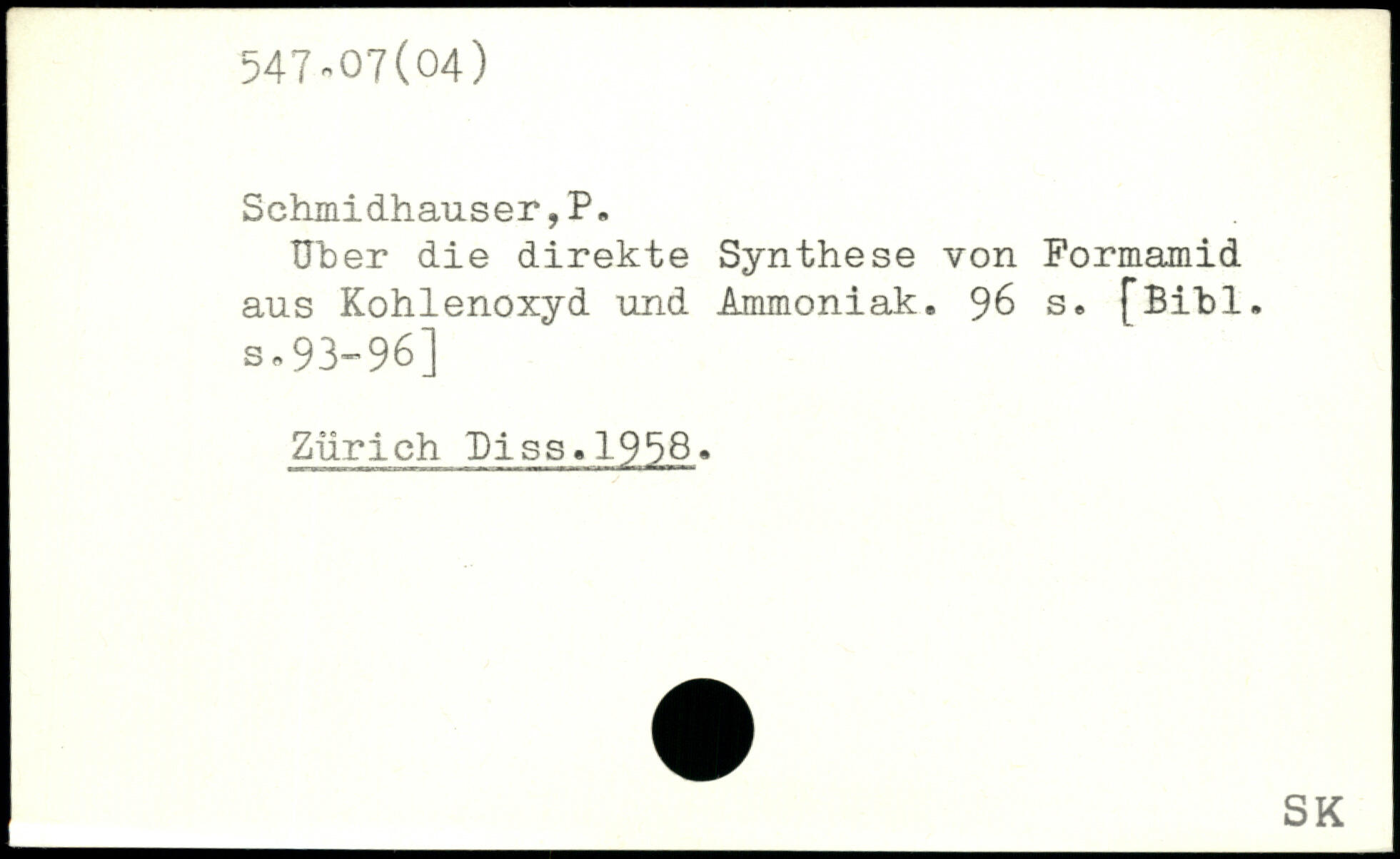 Uber die direkte Synthese von Formamid aus Kohlenoxyd und Ammoniak.