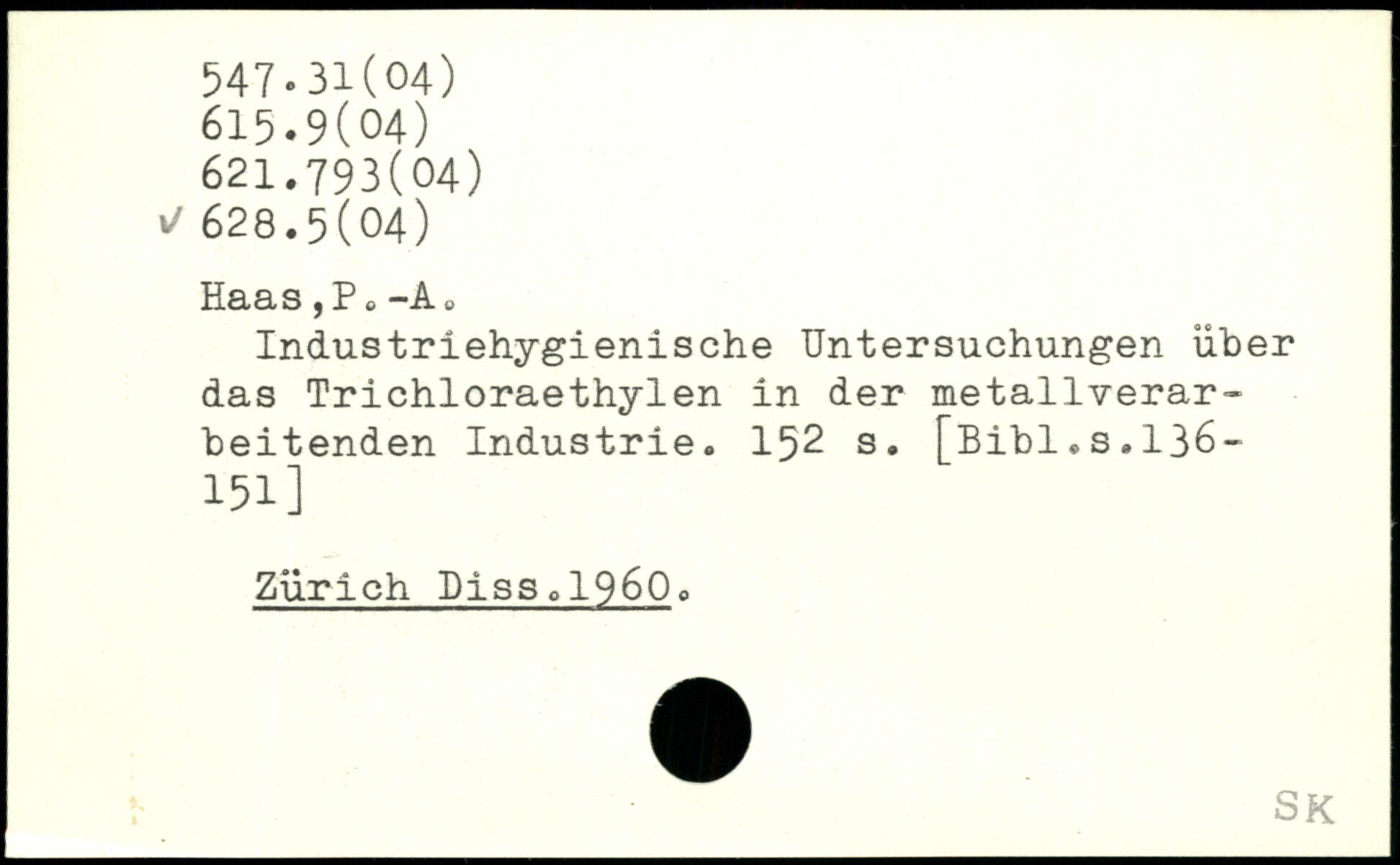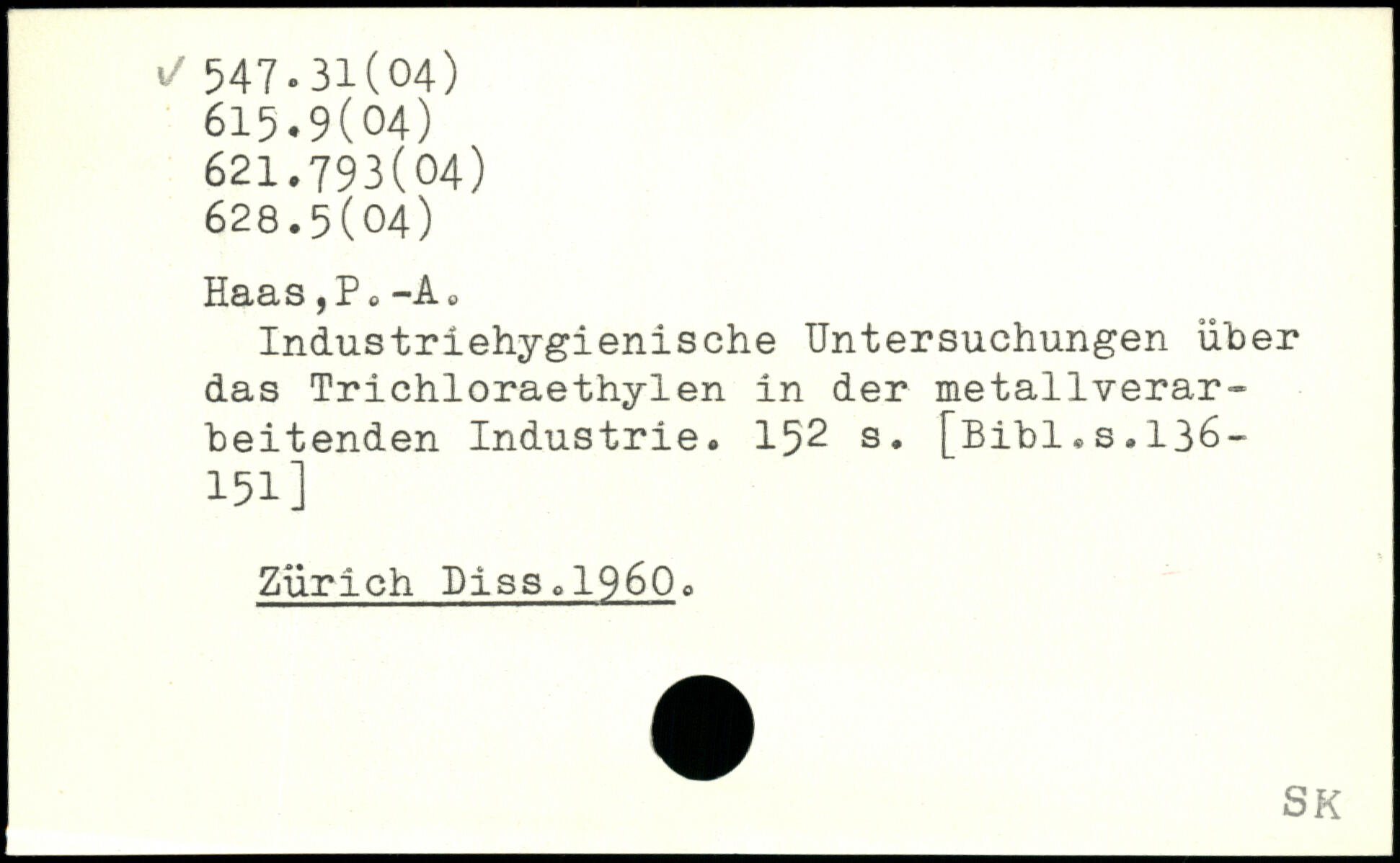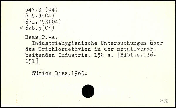 Industriehygienische Untersuchungen über das Trichloraethylen in der metallverarbeitenden Industrie.