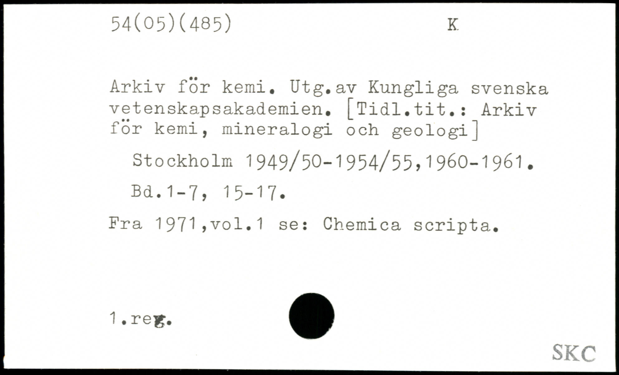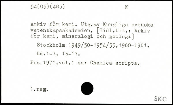 Arkiv för kemi. Utg.av Kungliga svenska vetenskapsakademien. [Tidl.tit.s Arkiv för kemi, mineralogi och geologi]