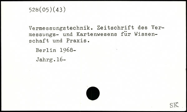 Vermessungstechnik. Zeitschrift des Ver-messungs- und Kartenwesens fiir Wissenschaft und Praxis.