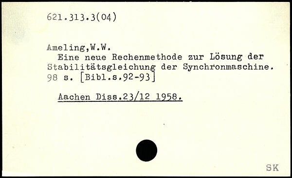 Eine neue Rechenmethode zur Lösung der Stabilitätsgleichung der Synchronmaschine.