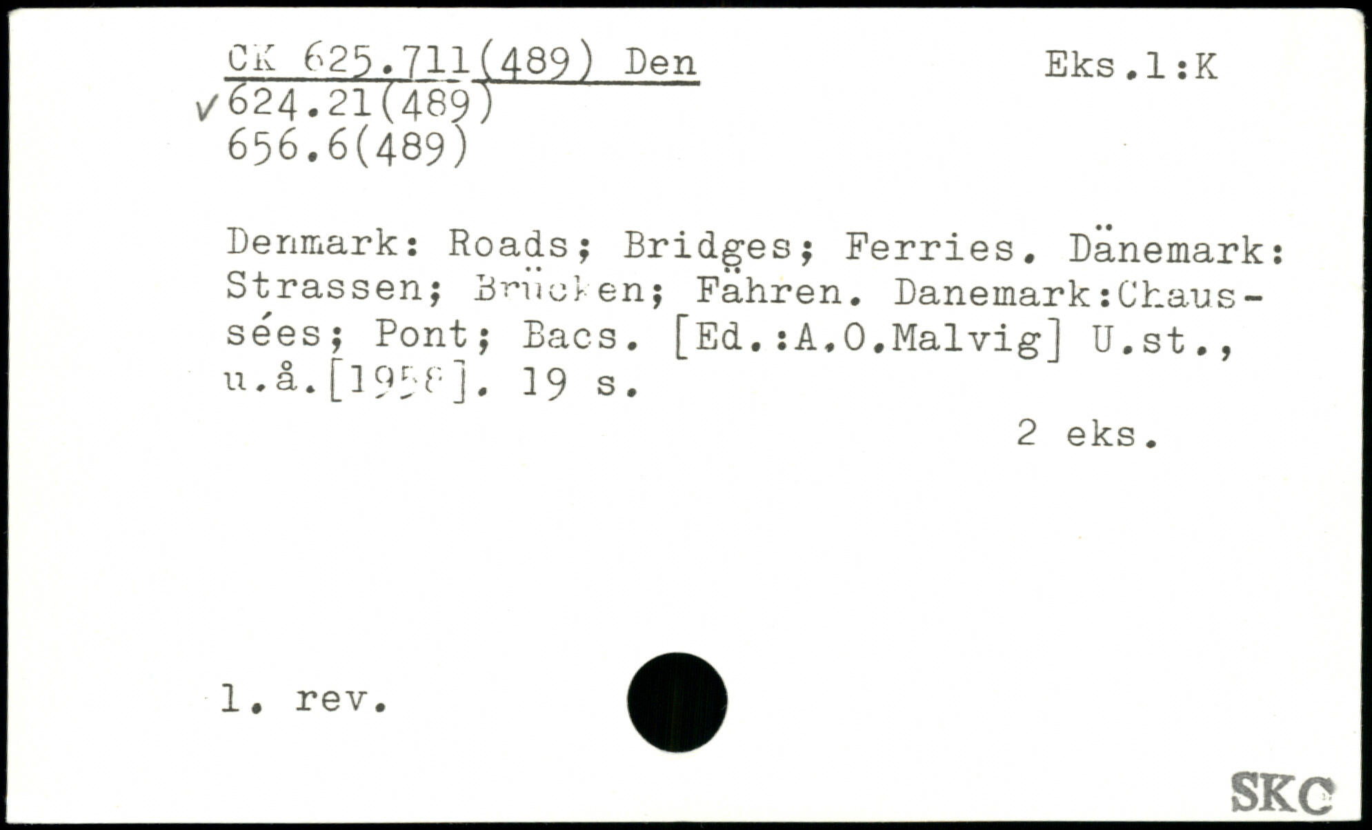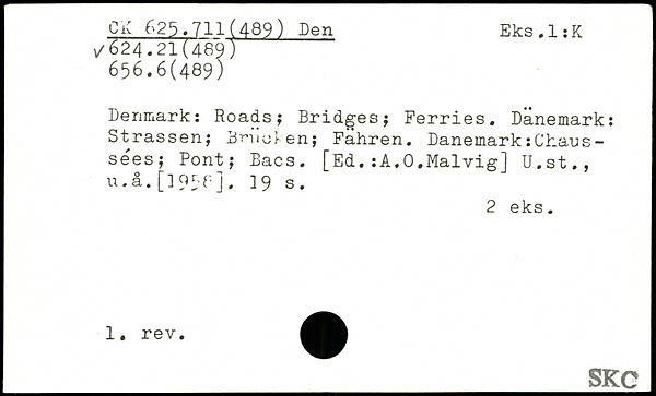 Denmark: Roads; Bridges; Ferries, Dänemark: Strassen; Benoten; Fahren. Dänemark:Chans -sees; Pont; Bacs. [Ed.:A,O.Malvig] U.st., u.a. []Q5f-].