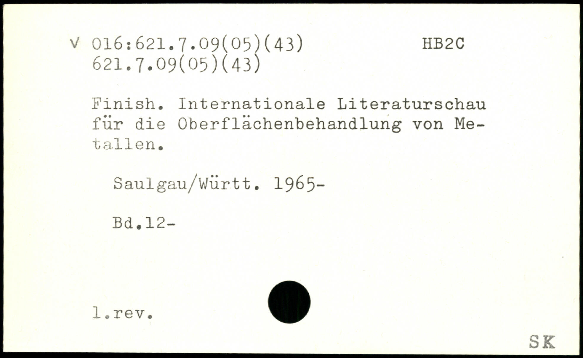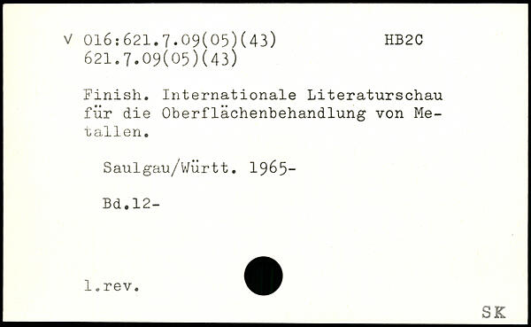 Finish. Internationale Literaturschau für die Oberflächenbehandlung von Metallen. Saulgau/württ. 1965-