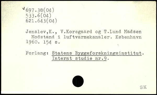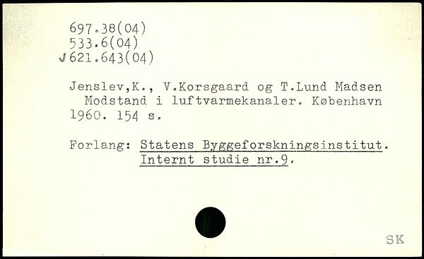Jenslev,K., V.Korsgaard og T.Lund Madsen Modstand i luftvarmekanaler
