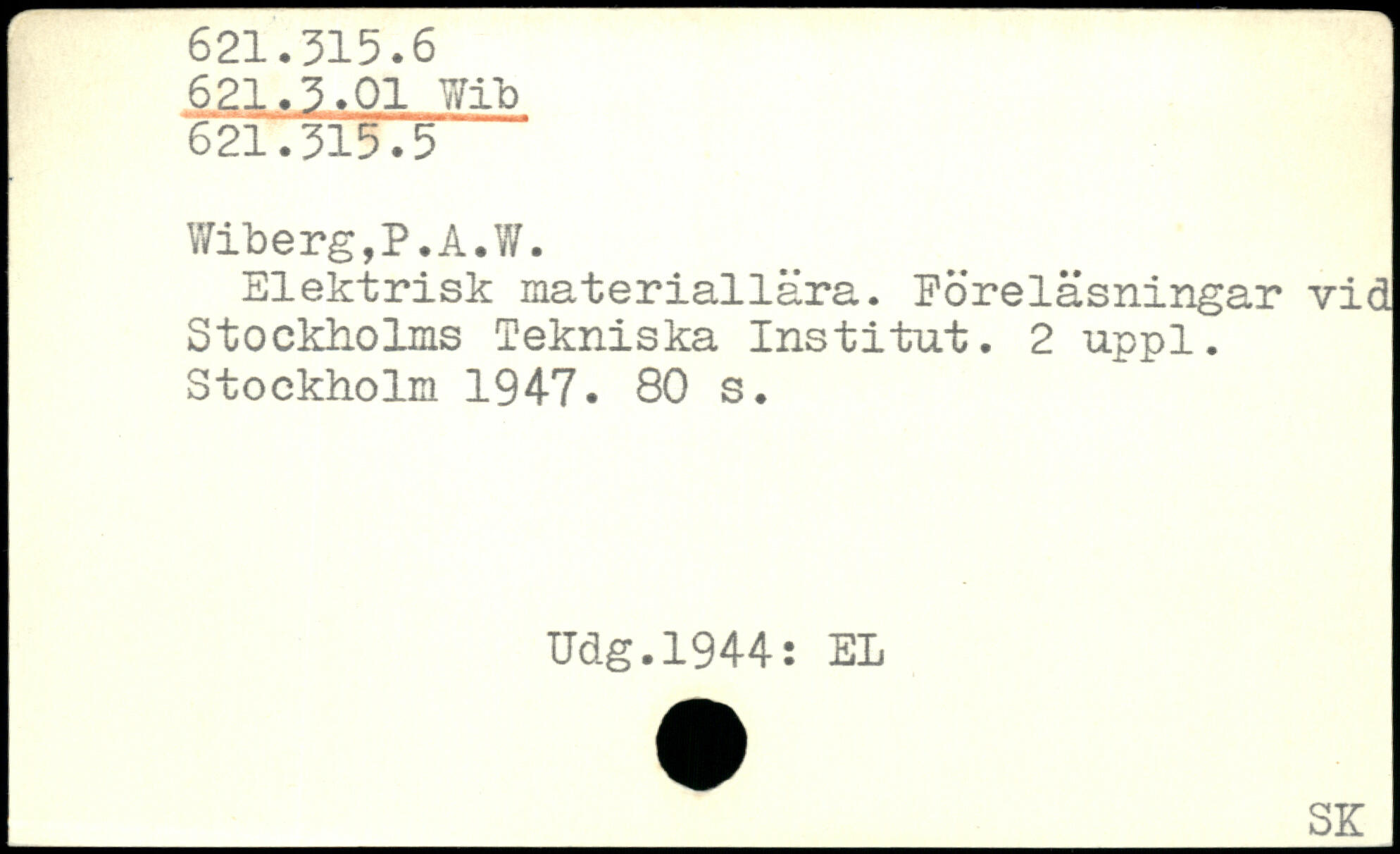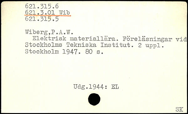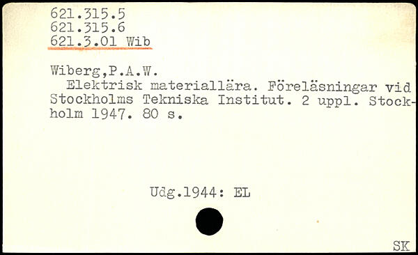 Elektrisk materiallära. Föreläsningar vid Stockholms Tekniska Institut.