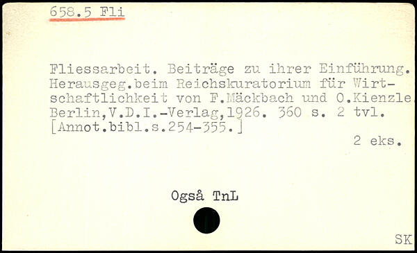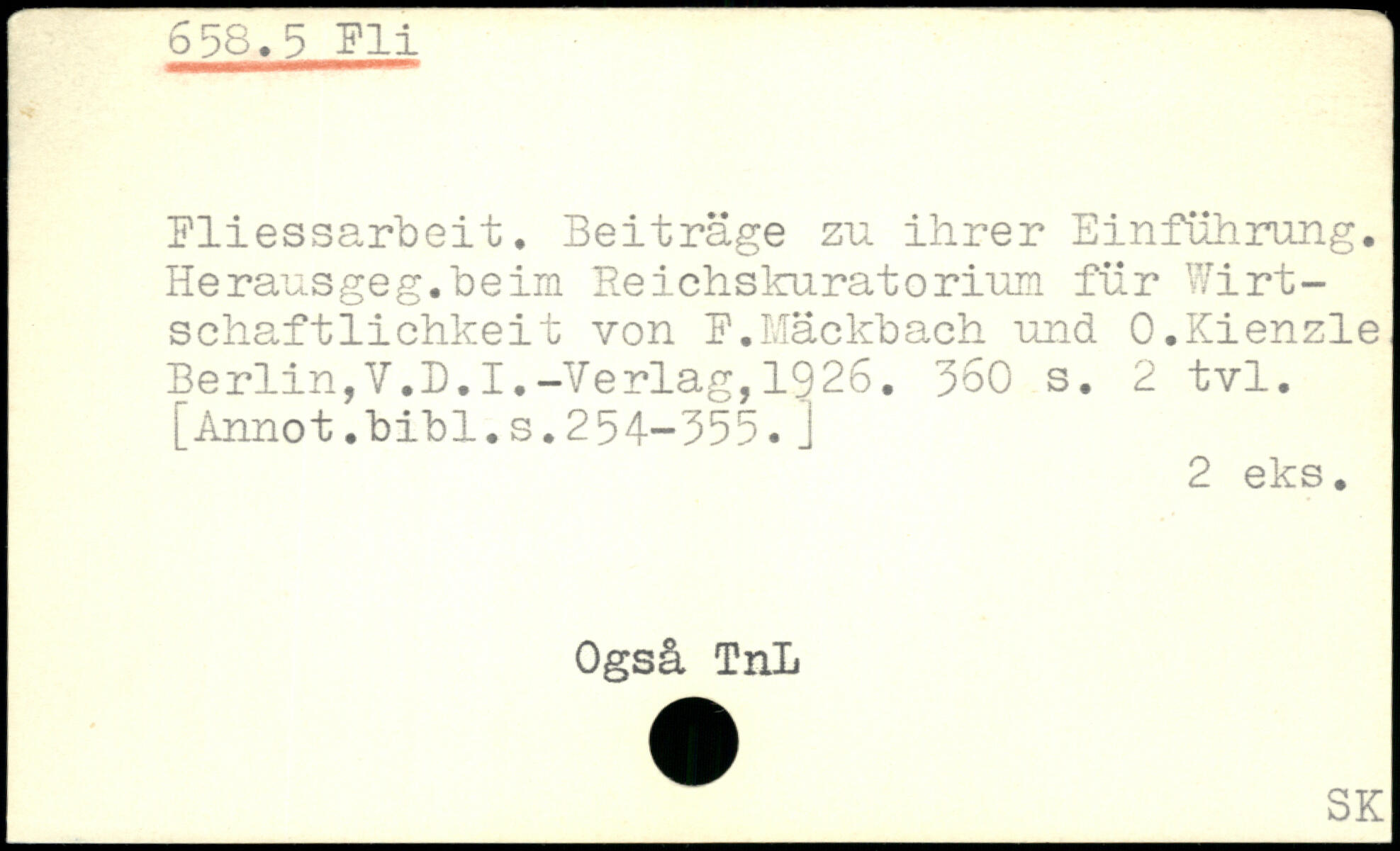 Pliessarbeit. Beiträge za ihrer Einführung. Herausgeg.beim Reichskuratorium für Wirtschaftlichkeit von E.Mäckbach und O.Kienzle Berlin,V.D.I.-Verlag,1926.