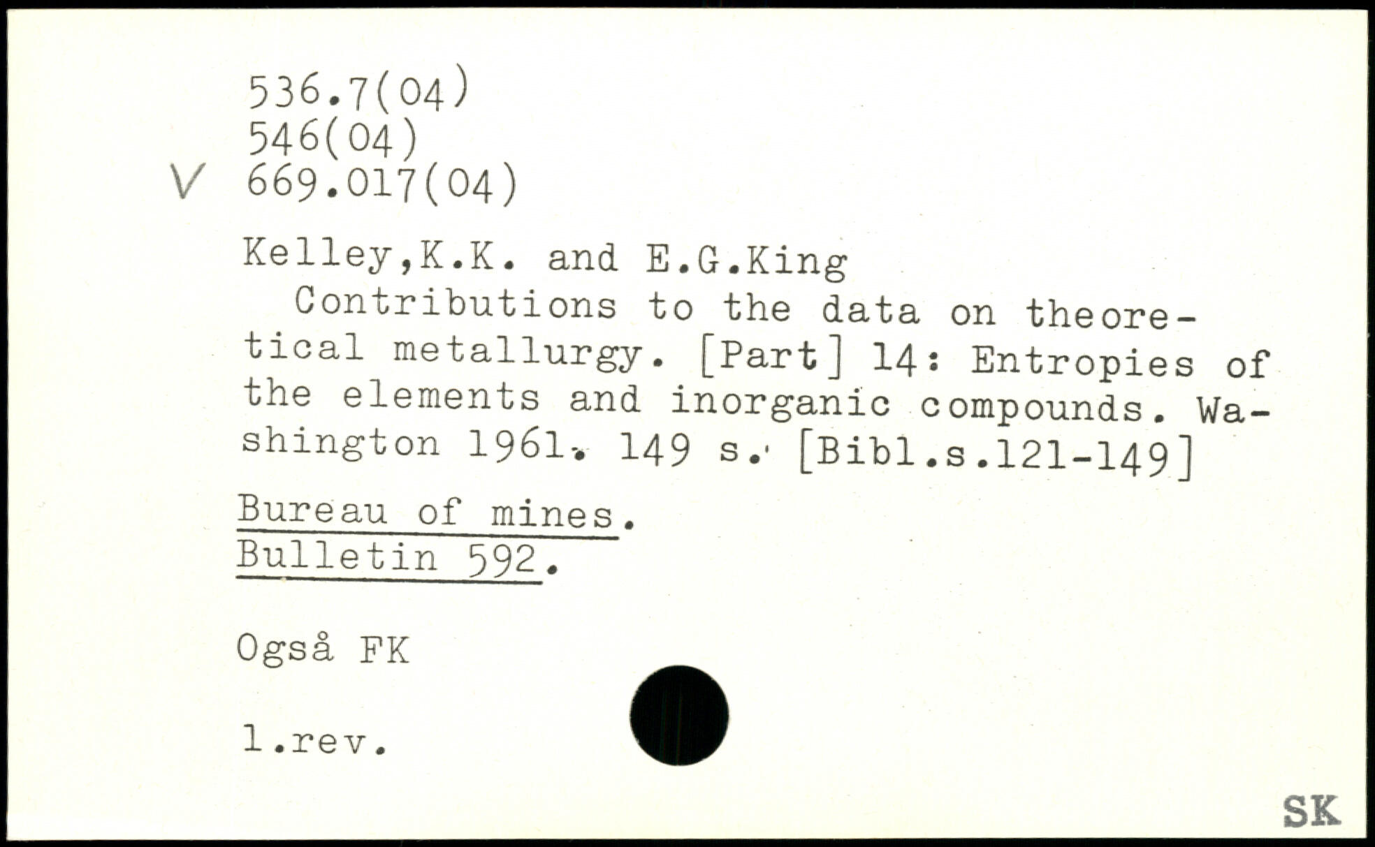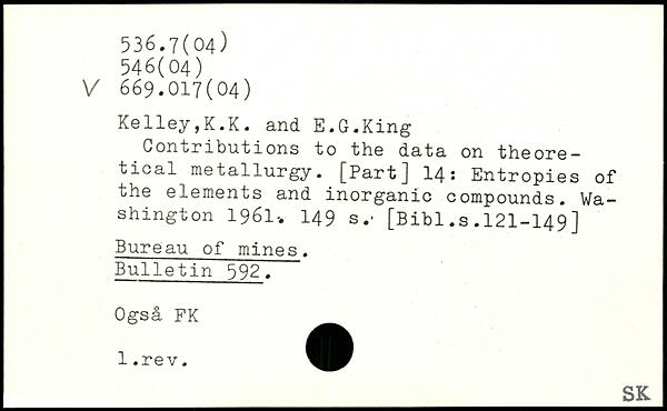 Con ^ributions "to "the data on theoretical metallurgy. [Part] 14.. Entropies of the elements and inorganic compounds.