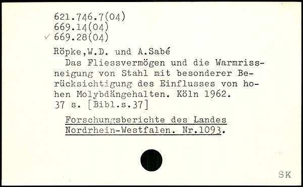 Das Pliessvermögen und die Warmrissneigung von Stahl mit besonderer Berücksichtigung des Einflusses von hohen Molybdängehalten.
