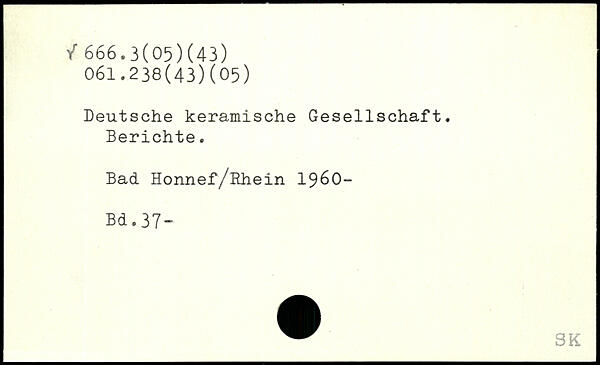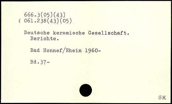 Deutsche keramische Gesellschaft. Berichte. Bad Honnef/Rhein 1960-
