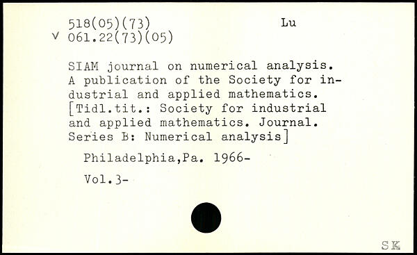 SIAM journal on numerical analysis. A publication of the Society for industrial and applied mathematics. [Tidl.tit.: Society for industrial and applied mathematics. Journal. Series B: Numerical analysis] Philadelphia,Pa. 1966-