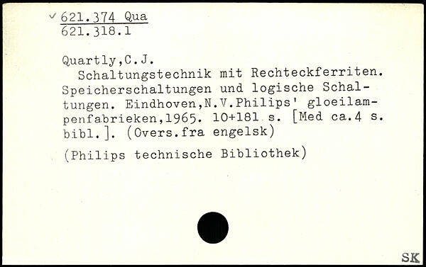 Schaltungstechnik mit Rechteckferriten. Speicherschaltungen und logische Schaltungen. Eindhoven,N.V.Philips' gloeilam-penfabrieken,1965