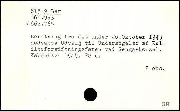 Beretning fra det under 2o,0ktot>er 1943 nedsatte Udvalg til Undersøgelse af Kul-ilteforgiftningsfaren ved Gengaskørsel