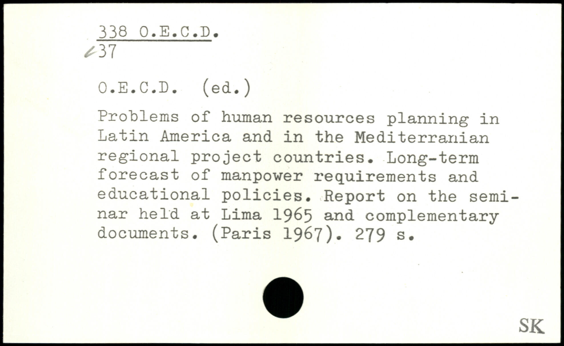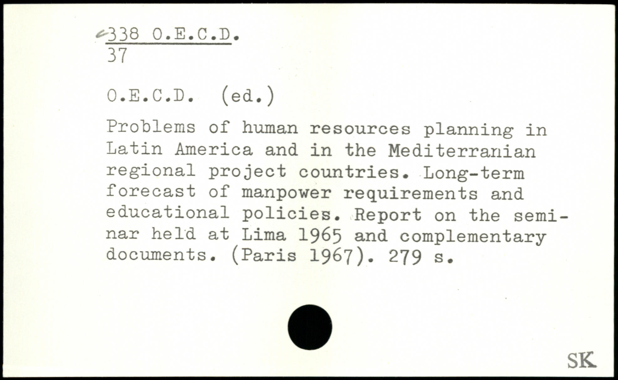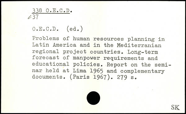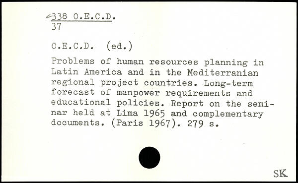 Problems of human resources planning in Latin America and in the Mediterranian regional project countries. Long-term forecast of manpower requirements and educational policies. Report on the seminar held at Lima 1965 and complementary documents. (