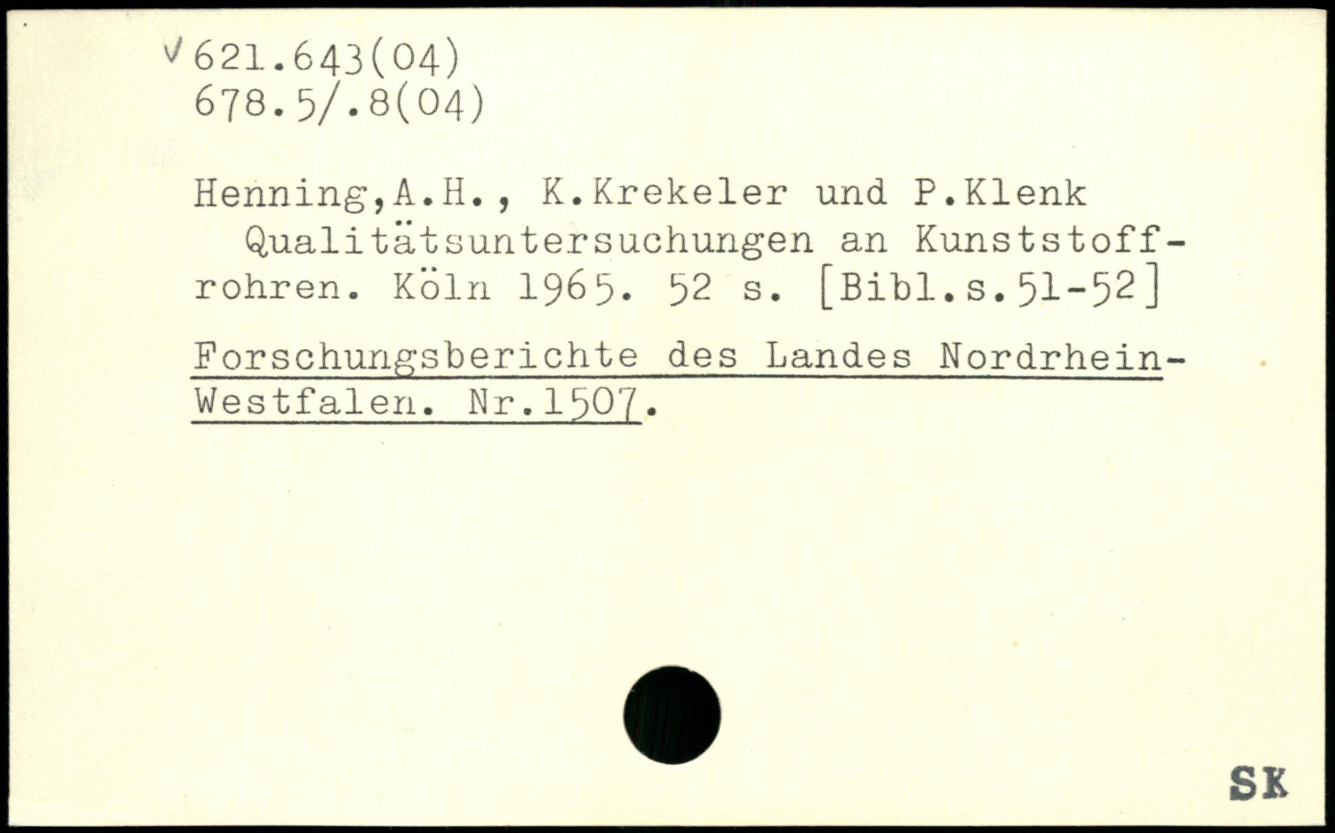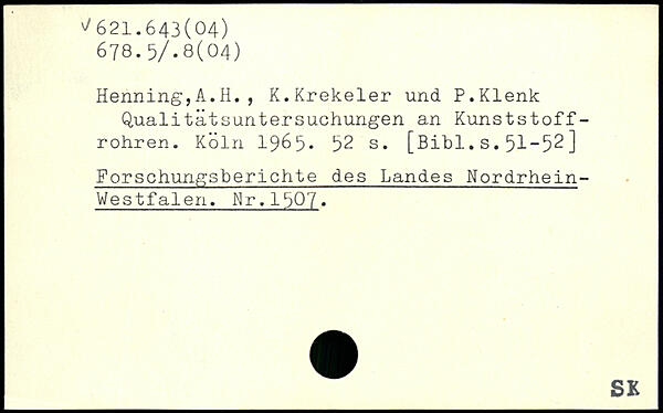 Henning,A.H. , K.Krekeler und P.Klenk Qualitätsuntersuchungen an Kunststoffrohren.