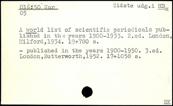 mfit5(V7?nr Sidste udg.i HBX 05 A world list of scientific periodicals published in the years 1900-1933.