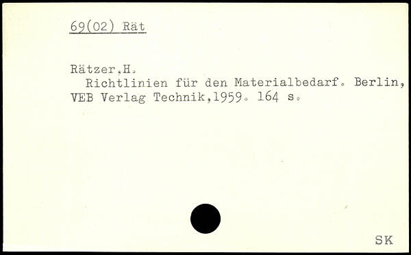Richtlinien für den Materialbedarf, Berlin, VEB Verlag Technik,1959. 164 s5