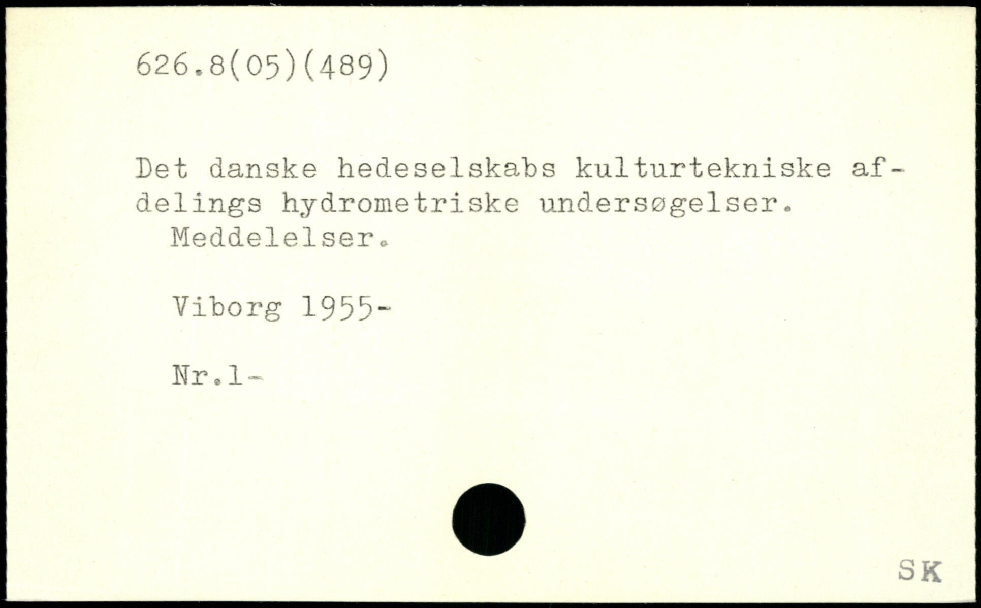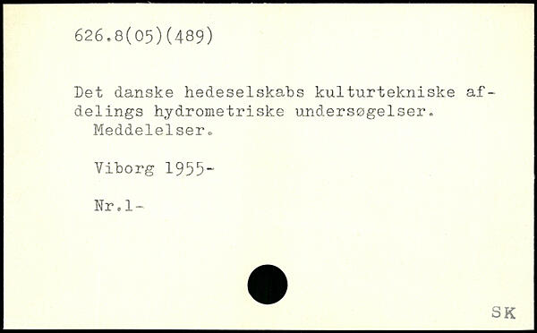 Det danske hedeselskabs kulturtekniske afdelings hydrometriske undersøgelser. Meddelelser0 Viborg 1955- Nr.l-