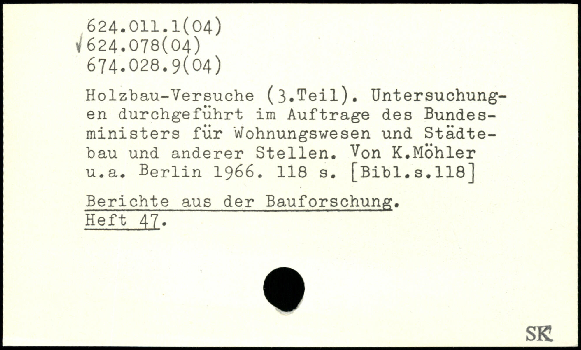Holzbau-Versuche (3.Teil). Untersuchungen durchgeführt im Aufträge des Bundesministers für Wohnungswesen und Städtebau und anderer Stellen. Von K.Möhler u.a.