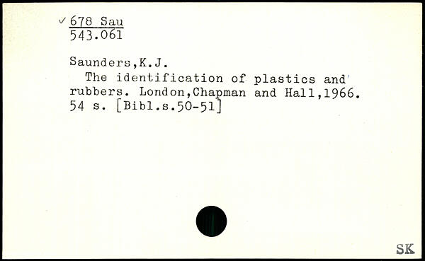 The identification of plastics and rubbers. London,Chapman and Hal1,1966.