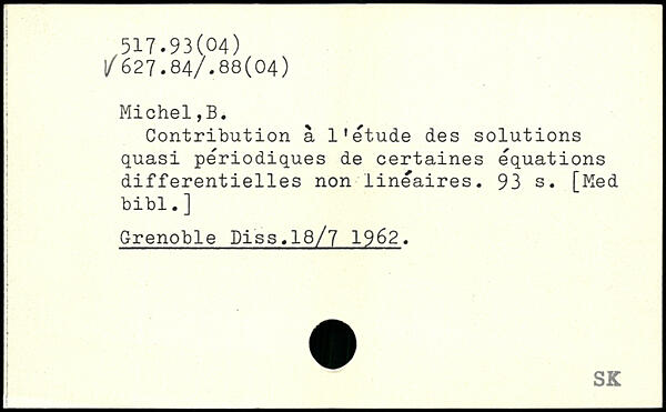 Contribution à 1'etude des solutions quasi périodiques de certaines équations différentielles non linéaires.