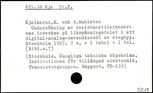 Undersökning av resistanstoleranser-nas inverkan på likspänningsfelet i ett digital-analog-omvandlarnät av stegtyp.