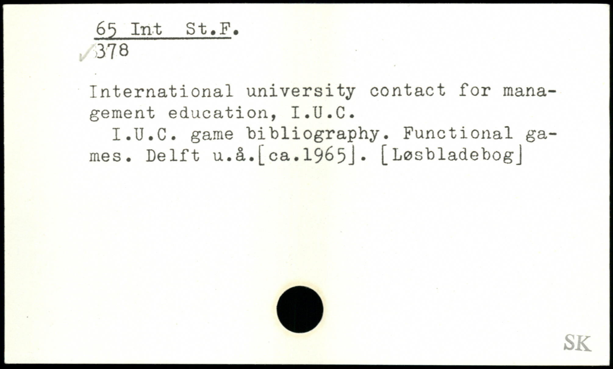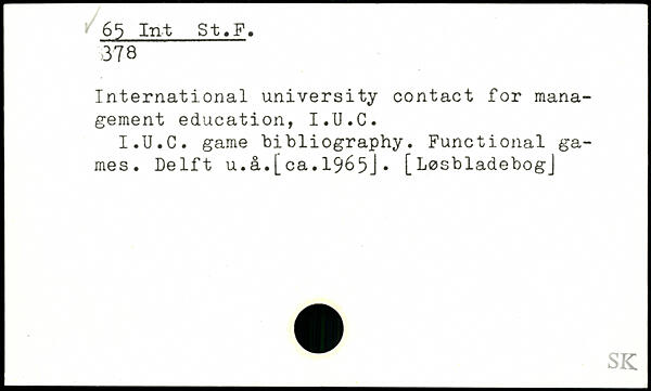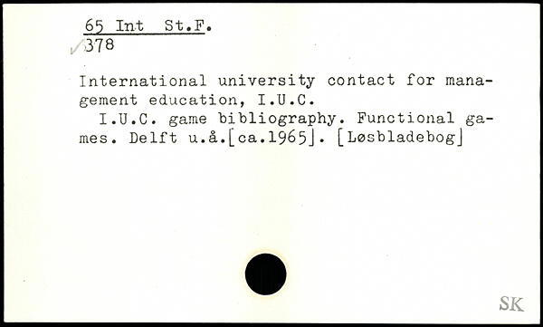 International university contact for management education, I.U.C. I.U.C. game bibliography. Functional games. Delft u.â.[ca.1965J. [LosbladebogJ