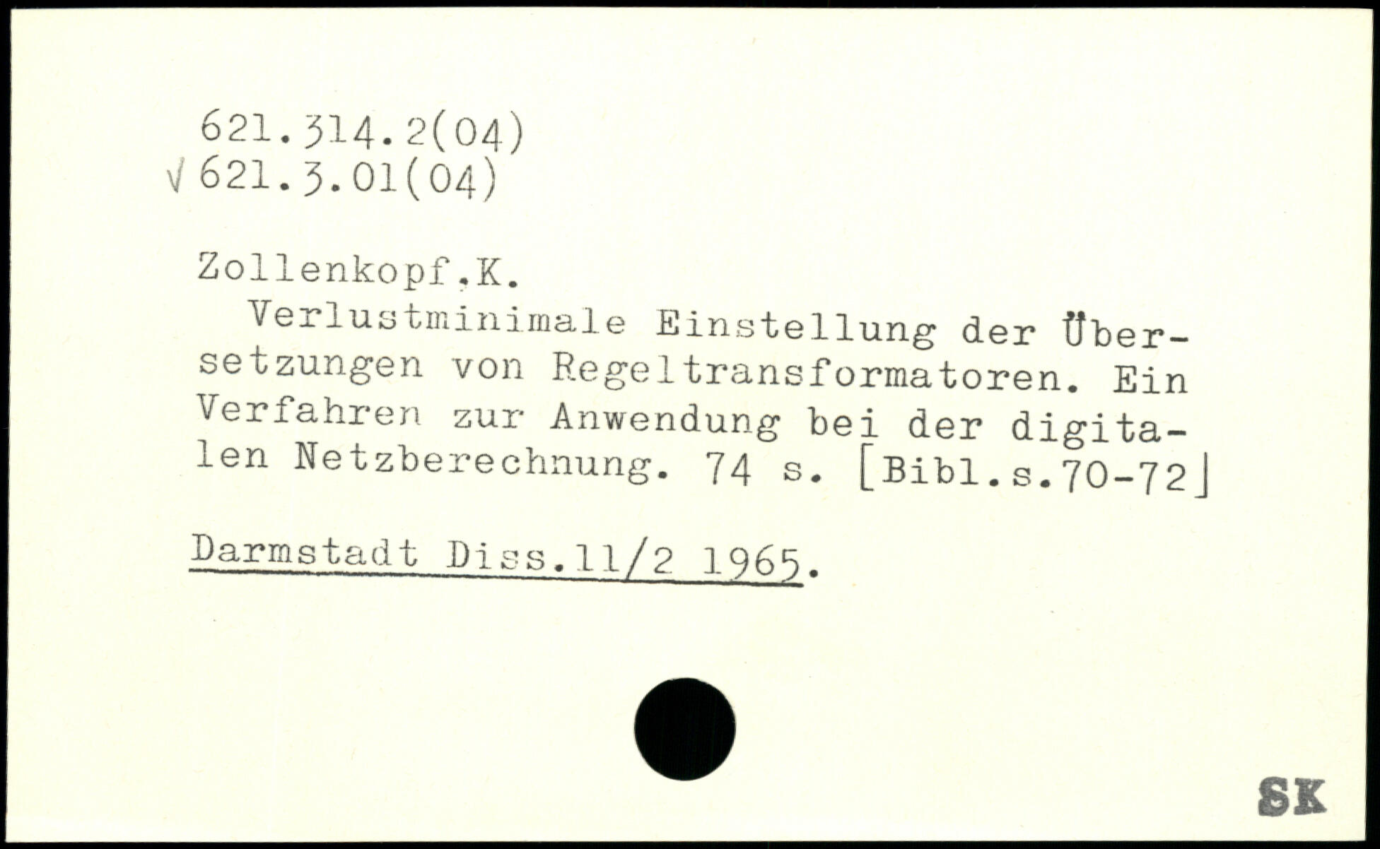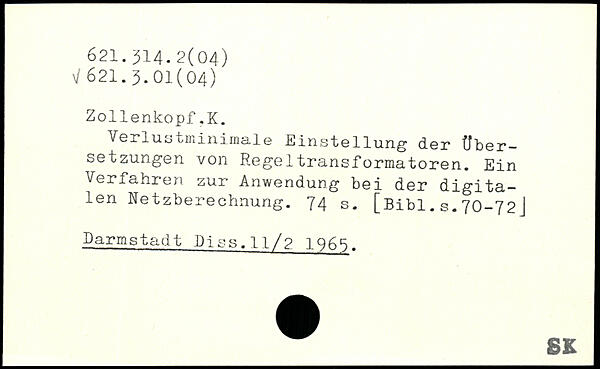 Verlustminimale Einstellung der Übersetzungen von Regeltransformatoren. Ein Verfahren zur Anwendung bei der digitalen Netzberechnung.