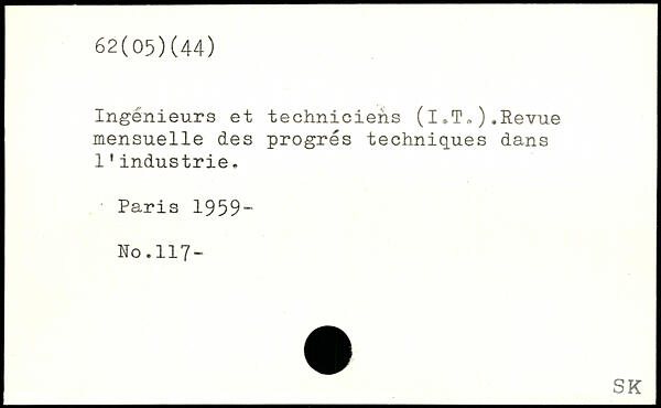 Ingénieurs et techniciens (l,T.).Revue mensuelle des progrès techniques dans 11 industrie.