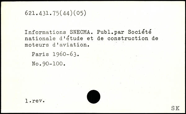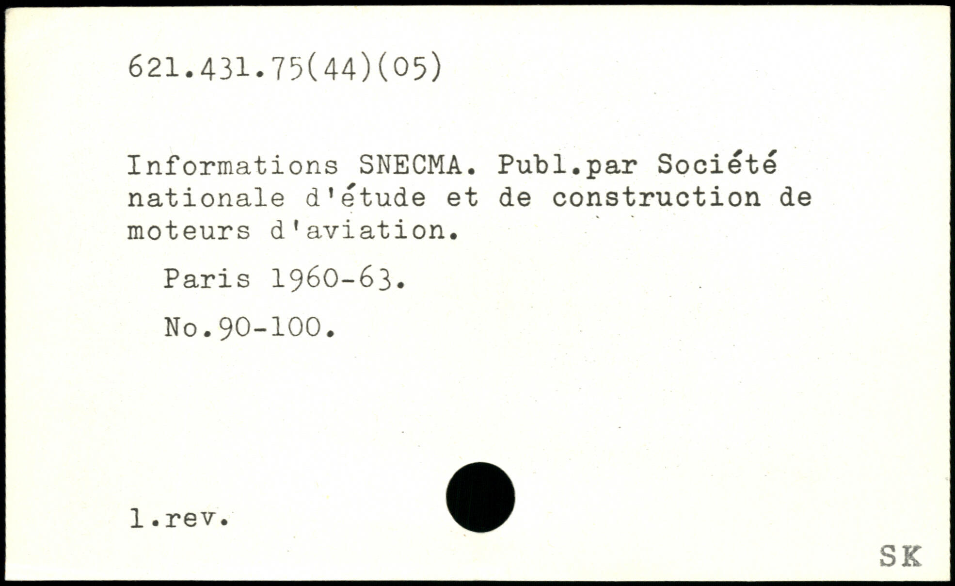 Informations SNECMA. Publ.par Société nationale d'étude et de construction de moteurs d'aviation.