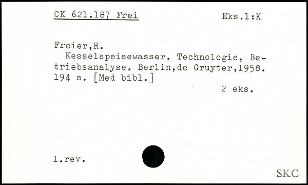 Kesselspeisewasser. Technologie, Betriebsanalyse. Berlin,de Gruyter,1958.