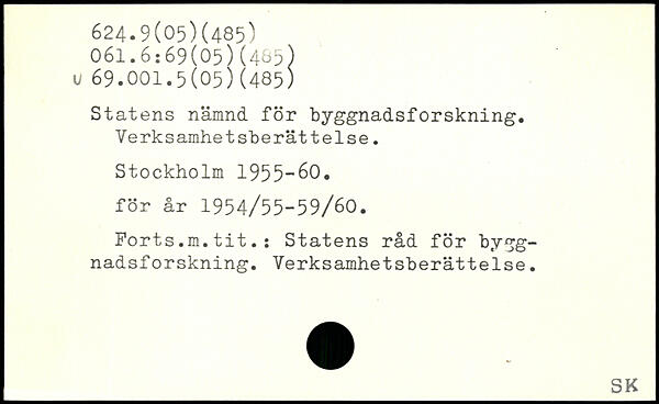 Statens nämnd för byggnadsforskning. Verksamhetsberättelse.