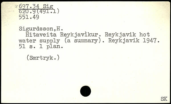 Hitaveita Reykjavikur. Reykjavik hot water supply (a summary). Reykjavik 1947.