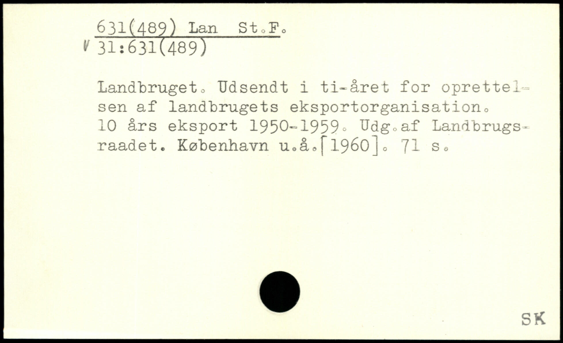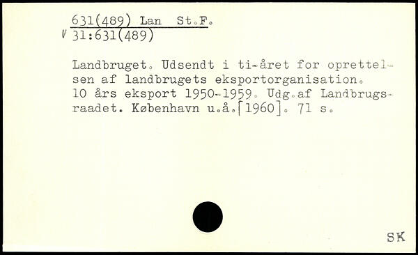 Landbruget o Udsendt i ti-året for oprettelsen af landbrugets eksportorganisation0 10 års eksport 1950“1959. Udgoaf Landbrugs-raadet. København u6å<,[1960jo