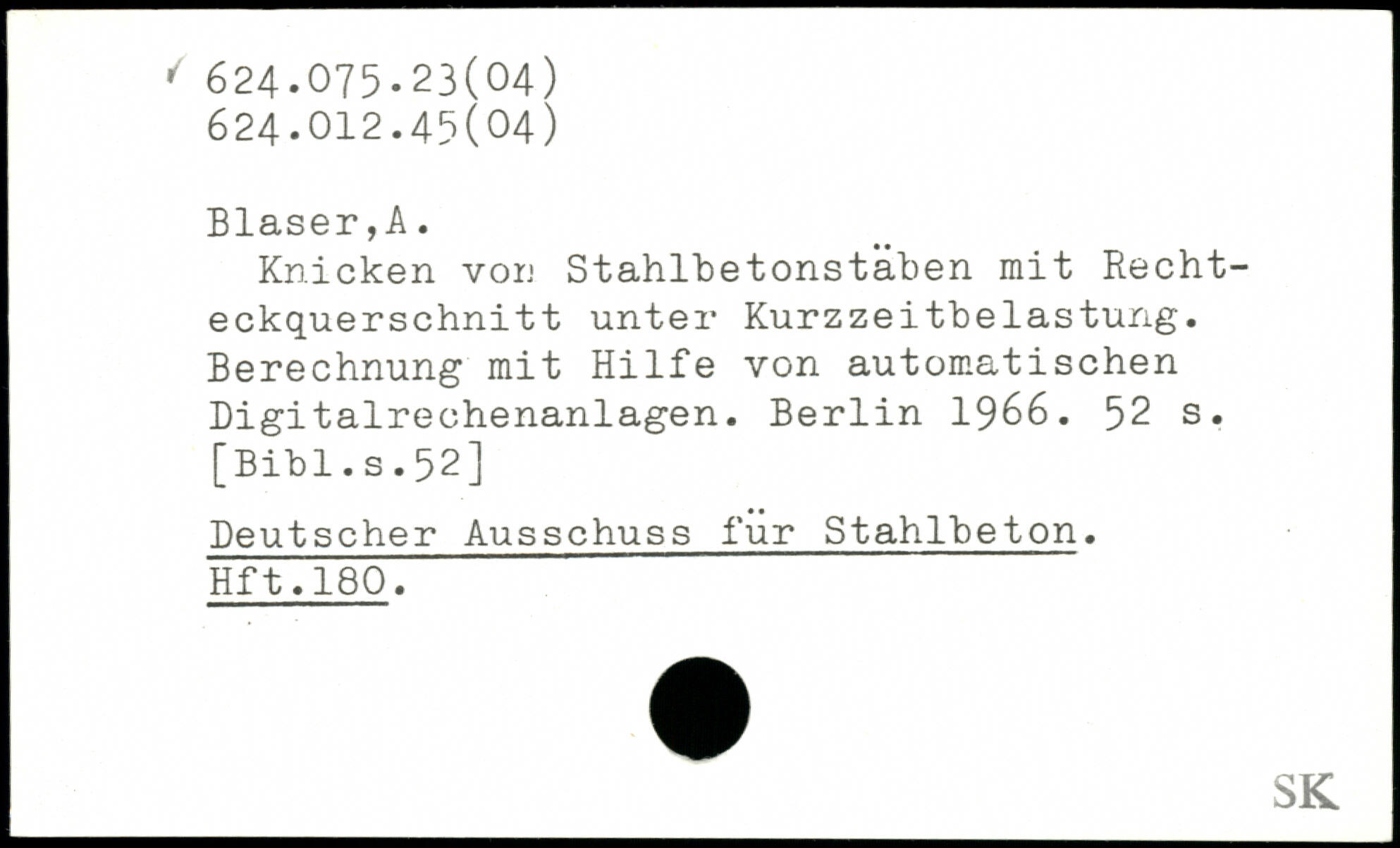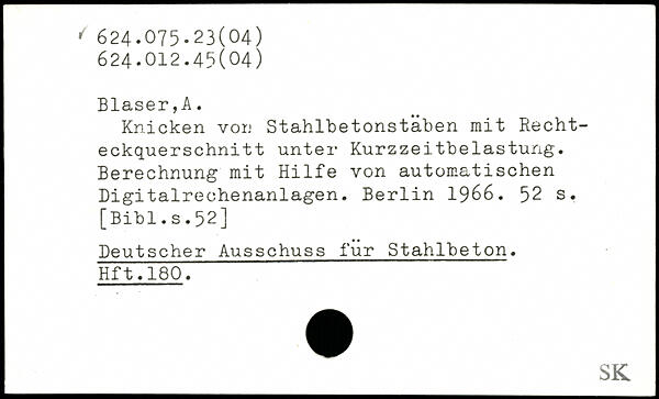 Knicken von Stahlbetonstäben mit Rechteckquerschnitt unter Kurzzeitbelastung. Berechnung mit Hilfe von automatischen Digitalrechenanlagen.