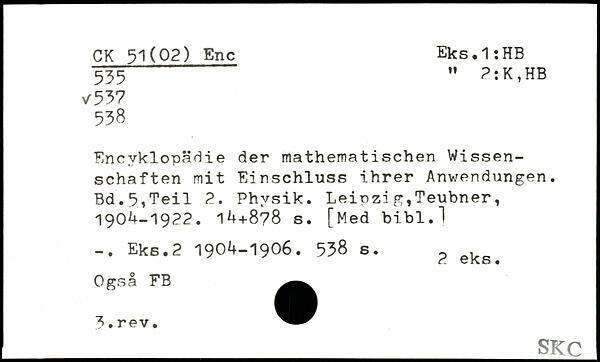 Encvklopädie der mathematischen Wissenschaften mit Einschluss ihrer Anwendungen.