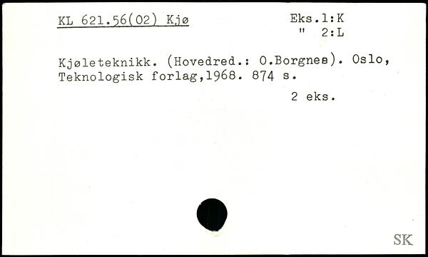 Kjøle teknikk. (Hovedred.î 0.Borgnes).