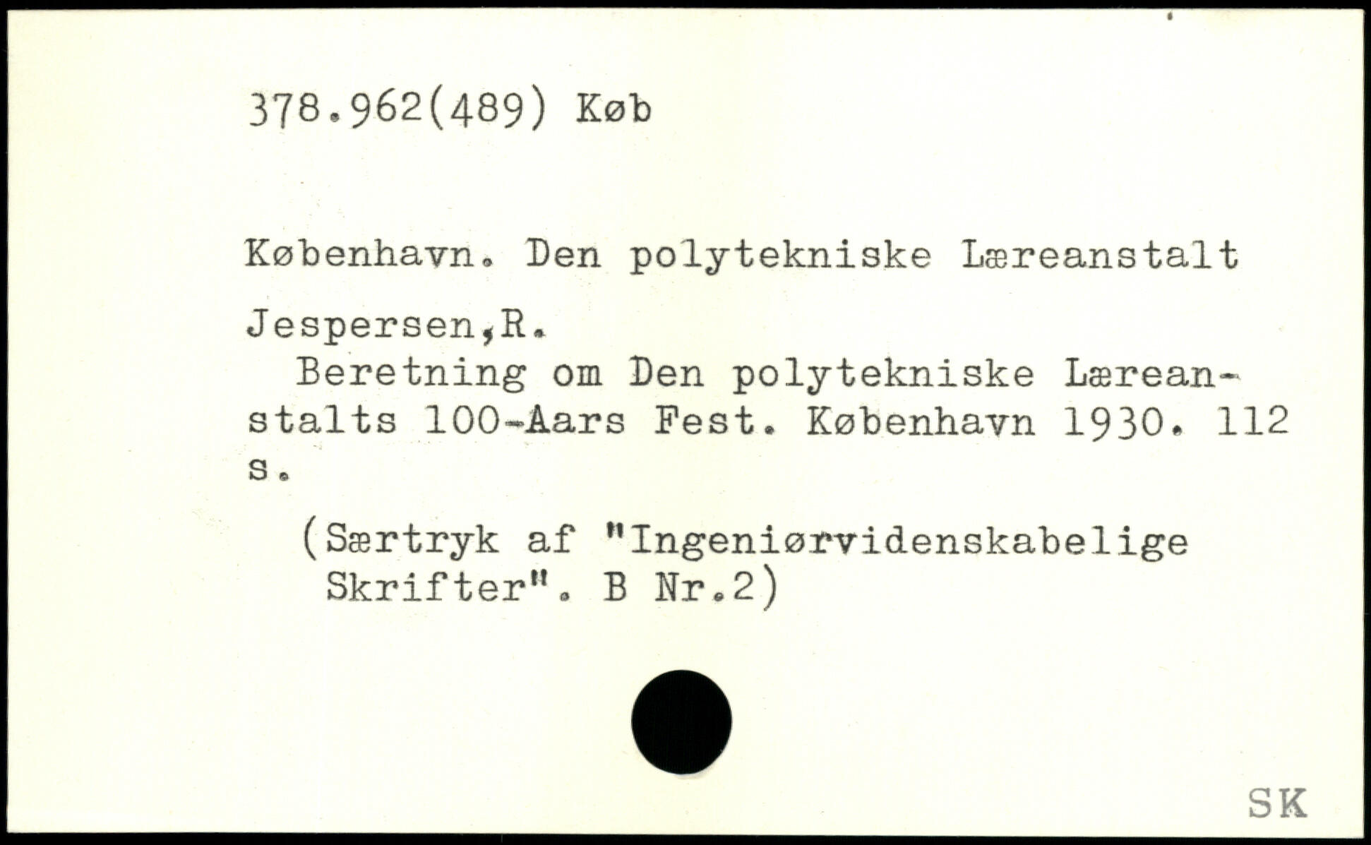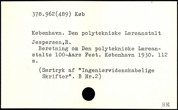 København. Den polytekniske Læreanstalt Jespersen,R. Beretning om Den polytekniske Læreanstalts 100-Aars Fest.