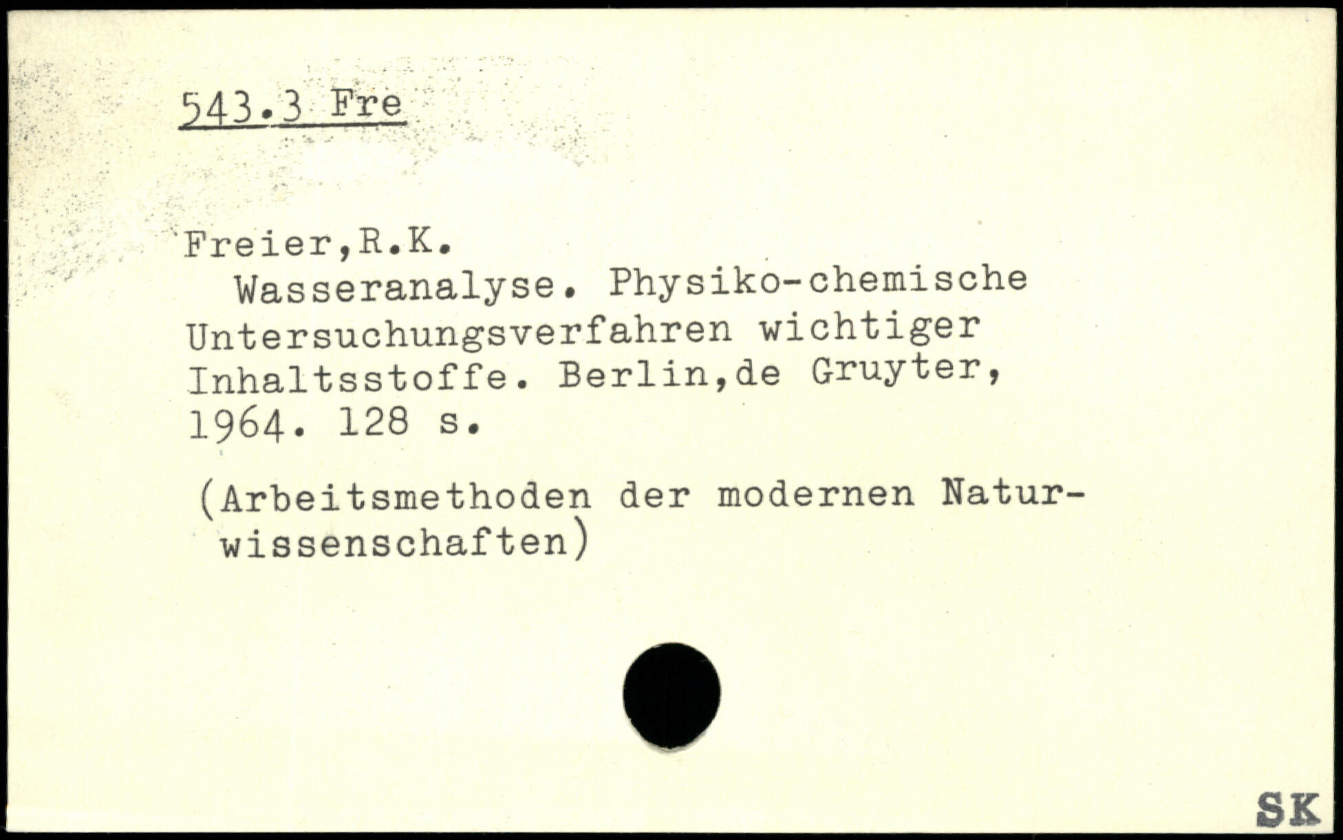 Wasseranalyse. Physiko-chemische Untersuchungsverfahren wichtiger Inhaltsstoffe. Berlin,de Gruyter, 1964.