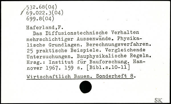 Das Diffusionstechnische Verhalten mehrschichtiger Aussenwände. Physikalische Grundlagen. Berechnungsverfahren. 25 praktische Beispiele. Vergleichende Untersuchungen. Bauphysikalische Regeln. Hrsg.: Institut für Bauforschung.