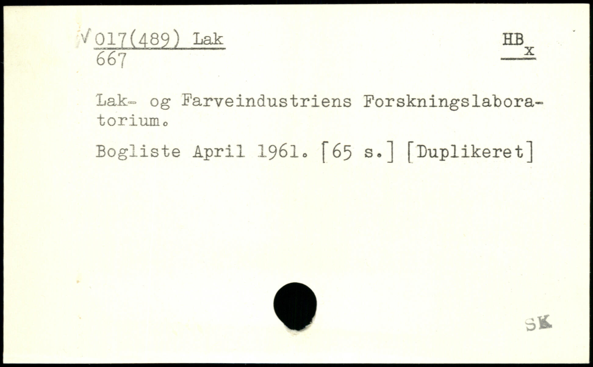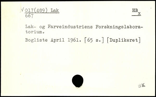 Lak- og Farveindustriens Forskningslaboratoriumo Bogliste April 1961, [