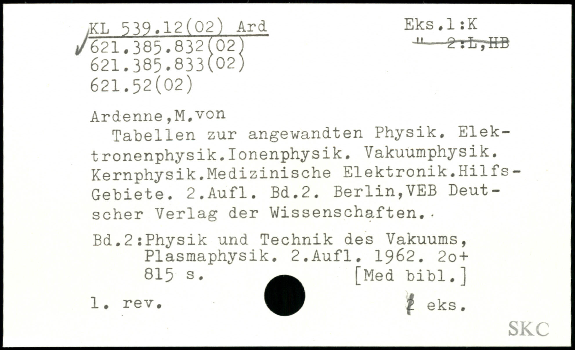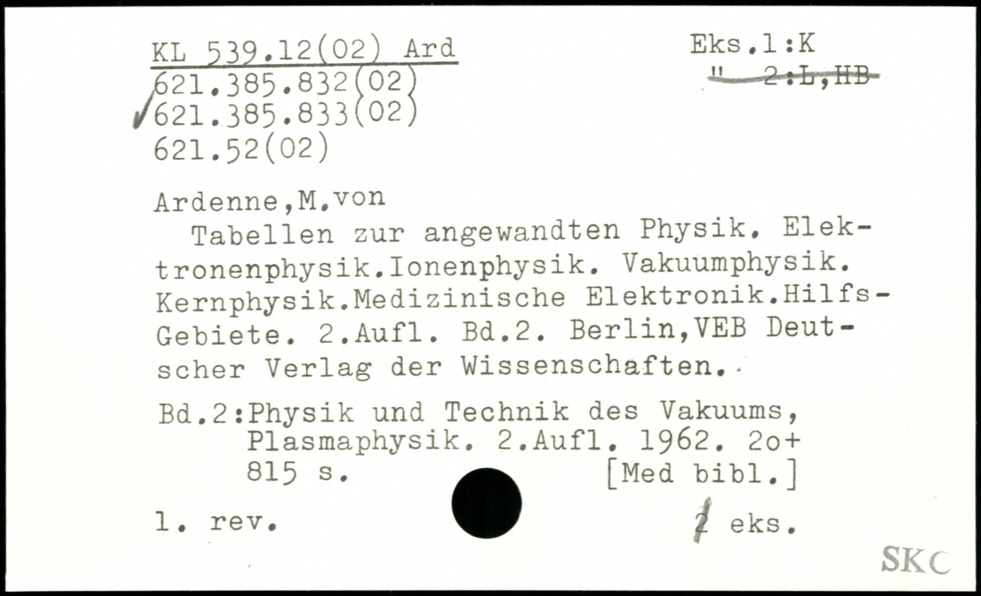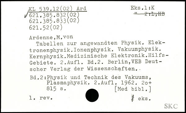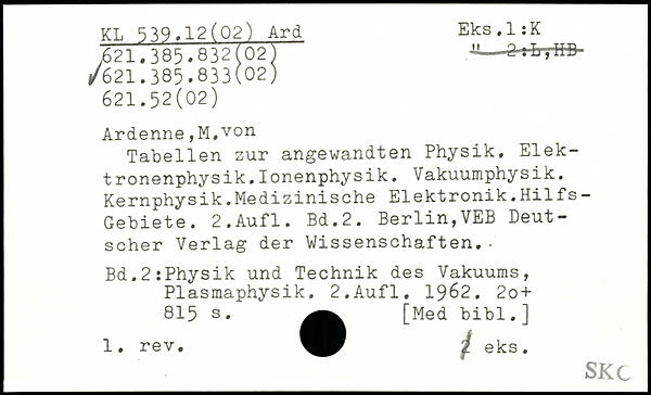 Tabellen zur angewandten Physik. Elektronenphysik. Ionenphysik. Vakuumphysik. Kernphysik.Medizinische Elektronik.Hilfs- Gebiete.