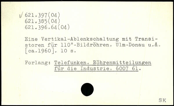 Eine Vertikal-Ablenkschaltung mit Transistoren für 110.'Bildröhreno Ulm-Donau u.å. [ca , 1960]e