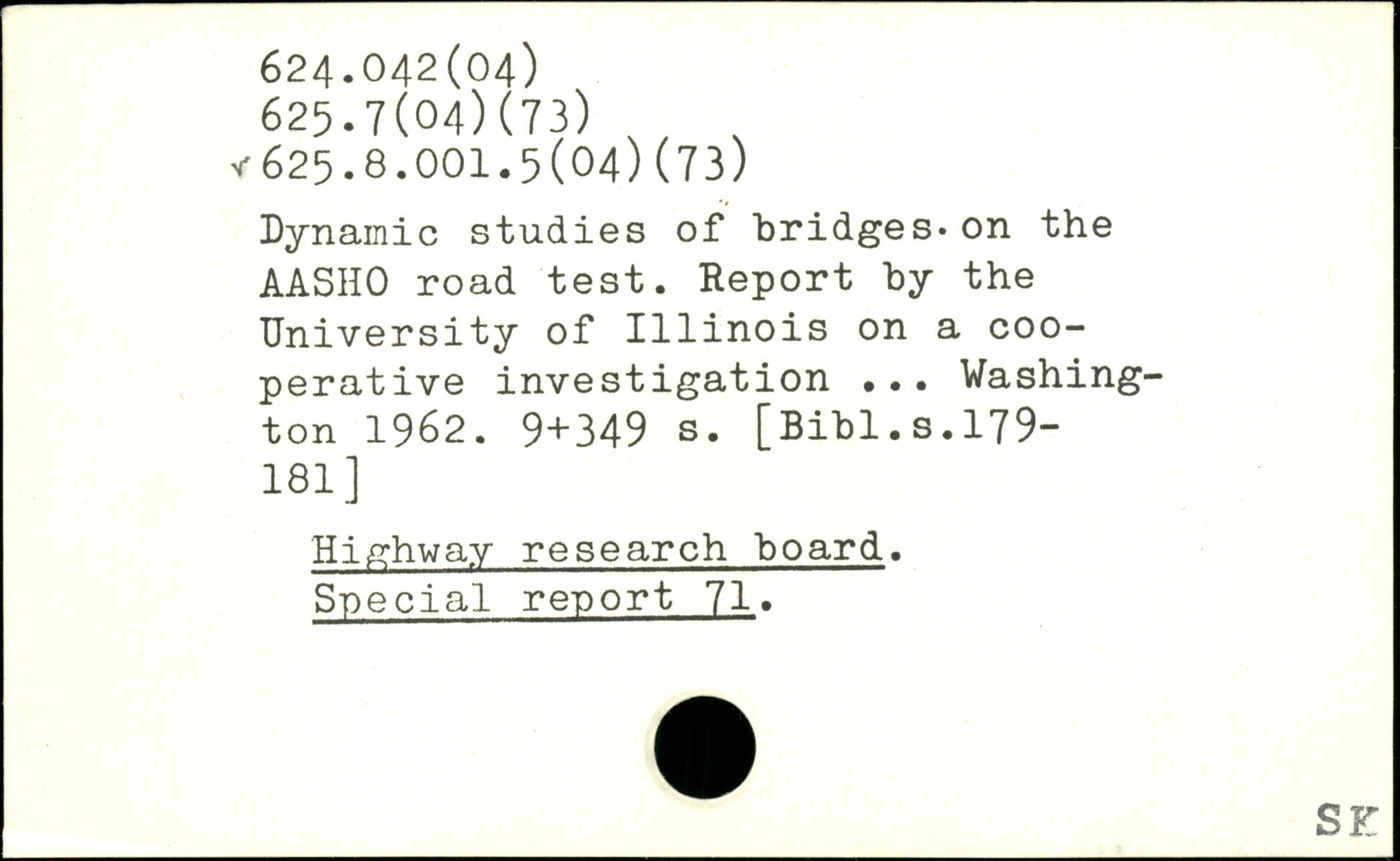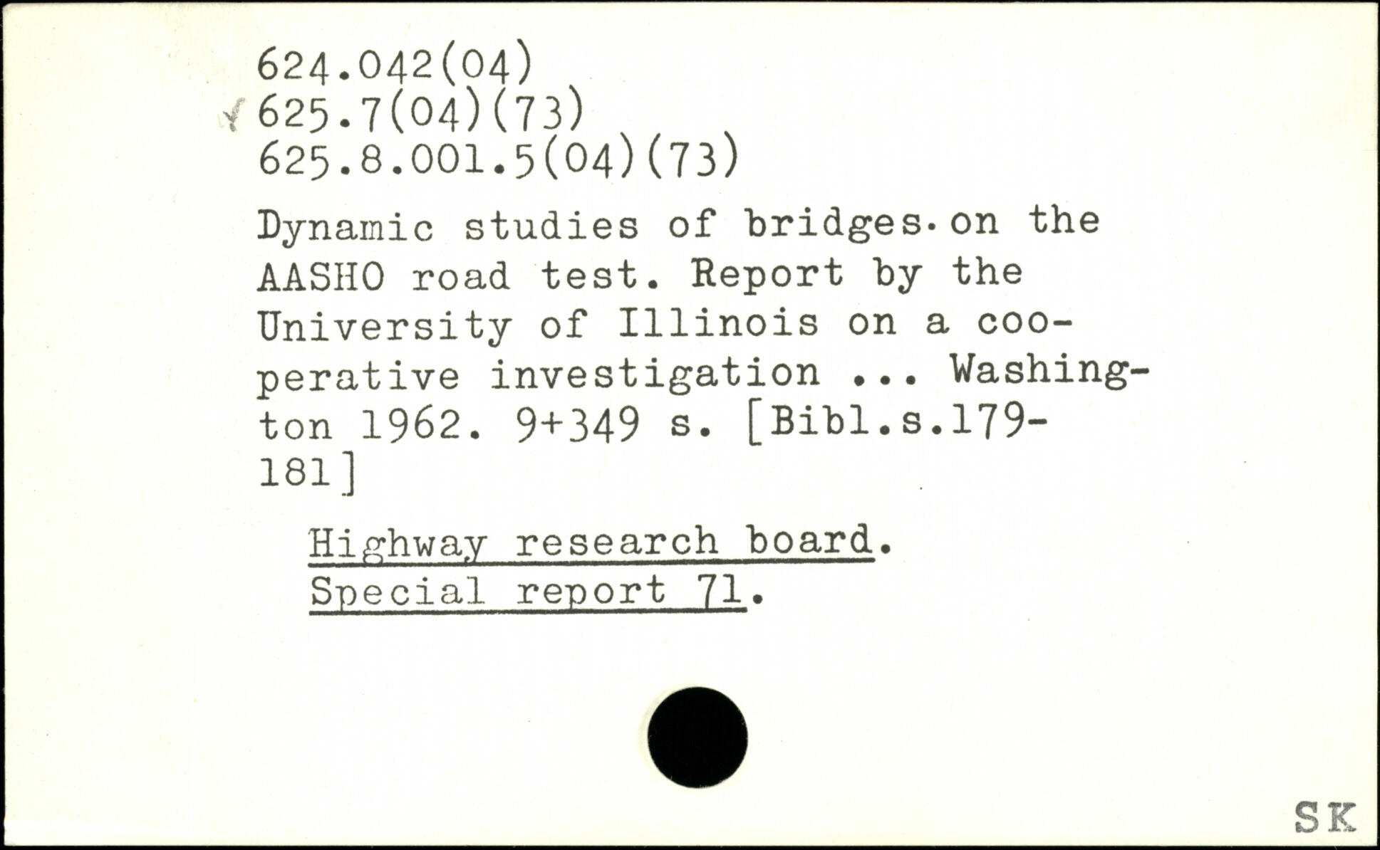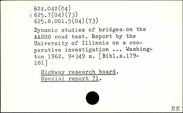 Dynamic studies of bridges. on the AASHO road test. Report by the University of 1111nois on a cooperative investigation ...