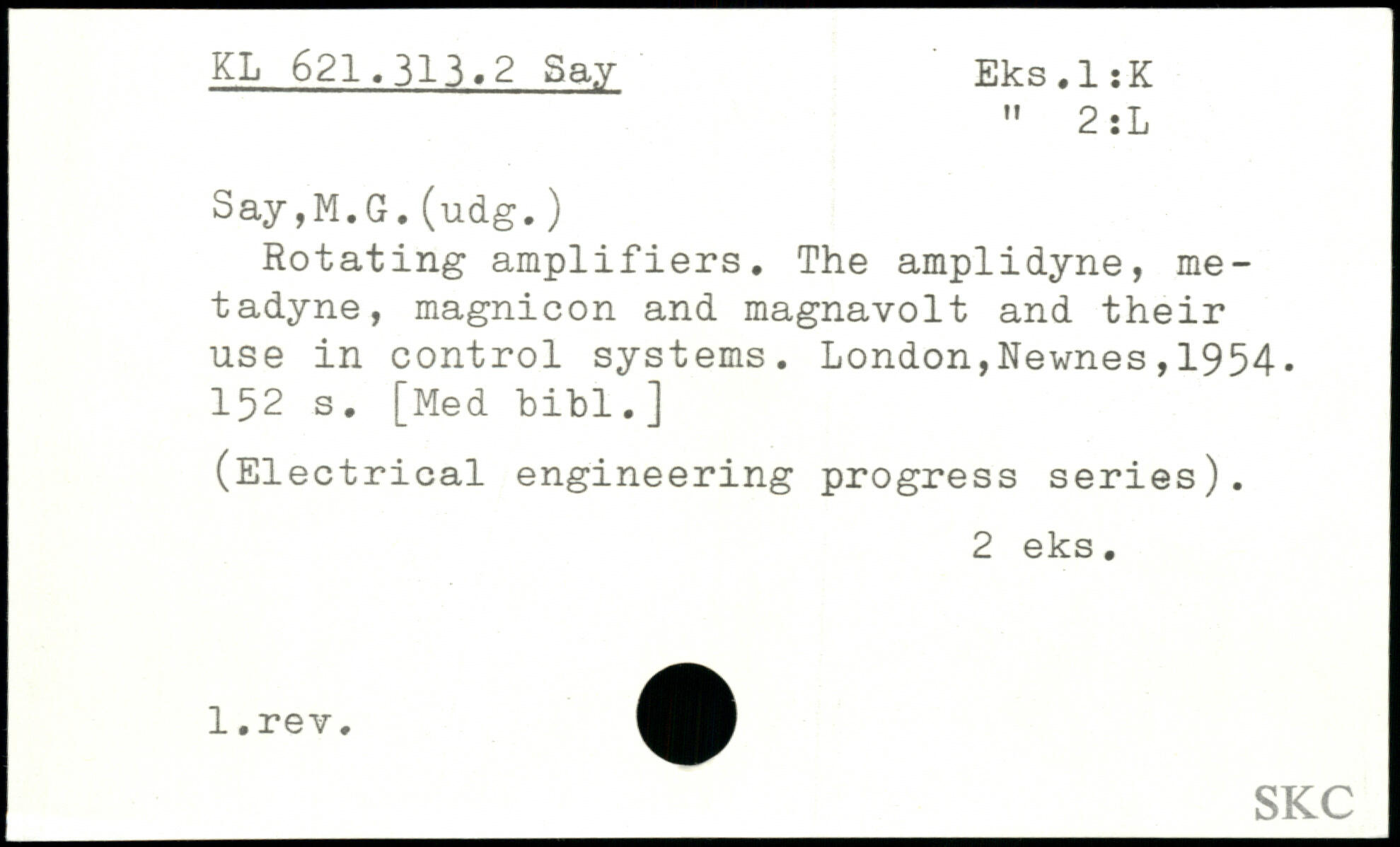 Rotating amplifiers. The amplidyne, metadyne, magnicon and magnavolt and their use in control systems.
