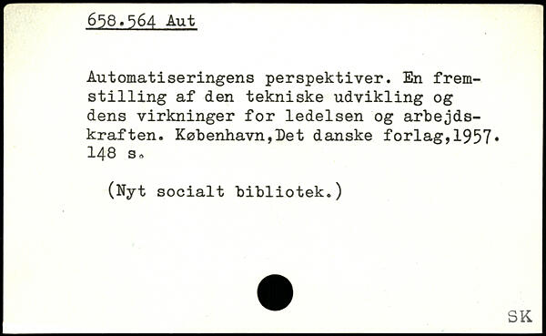 Automatiseringens perspektiver. En fremst1111ng af den tekniske udvikling og dens virkninger for ledelsen og arbejdskraften.