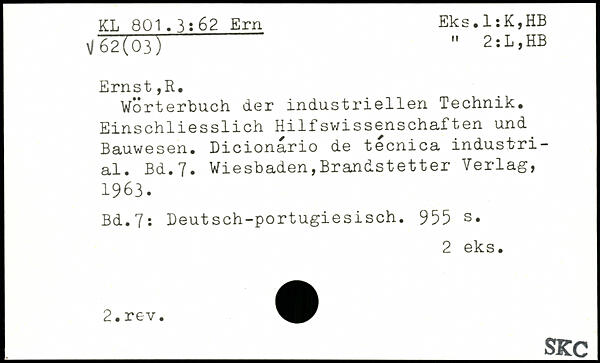 Wörterbuch der industriellen Technik, Einschliesslich Hilfswissenschaften und Bauwesen, Dicionario de tecnica industrial.