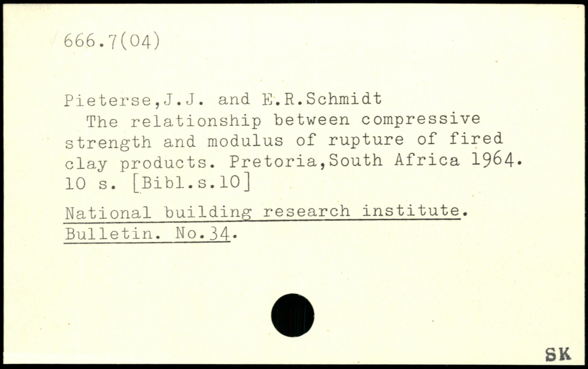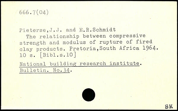 The relationship between compressive strength and modulus of rupture of fired clay products. Pretoria,South Africa 1964.