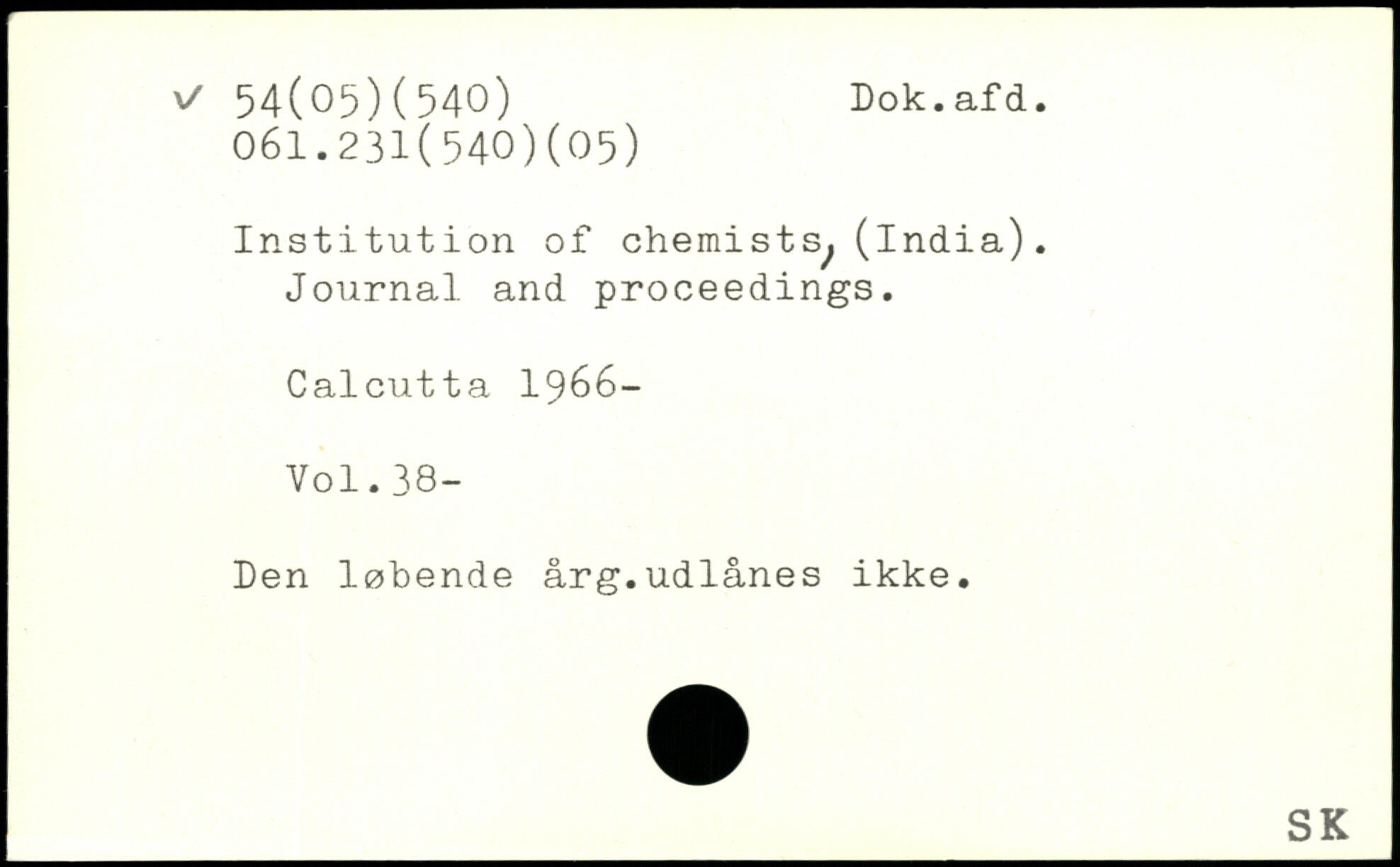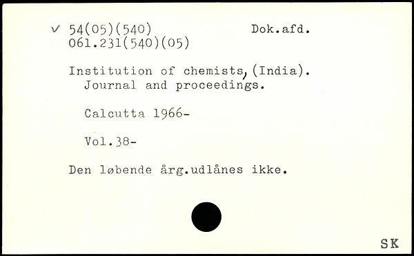 Institution of chemists^ (India). Journal and proceedings. Calcutta 1966-