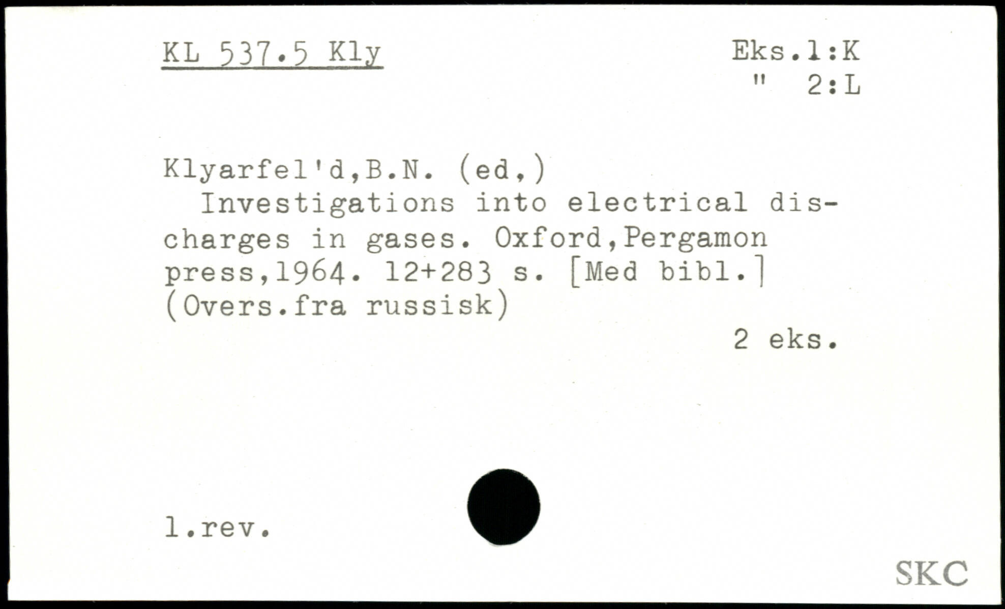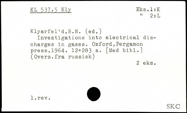 Klyarfel'd,B.N. (edt) Investigations into electrical discharges in gases.