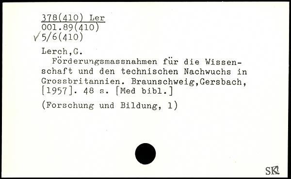 Förderungsmassnahmen für die Wissenschaft und den technischen Nachwuchs in Grossbritannien. Braunschweig,Gersbach,